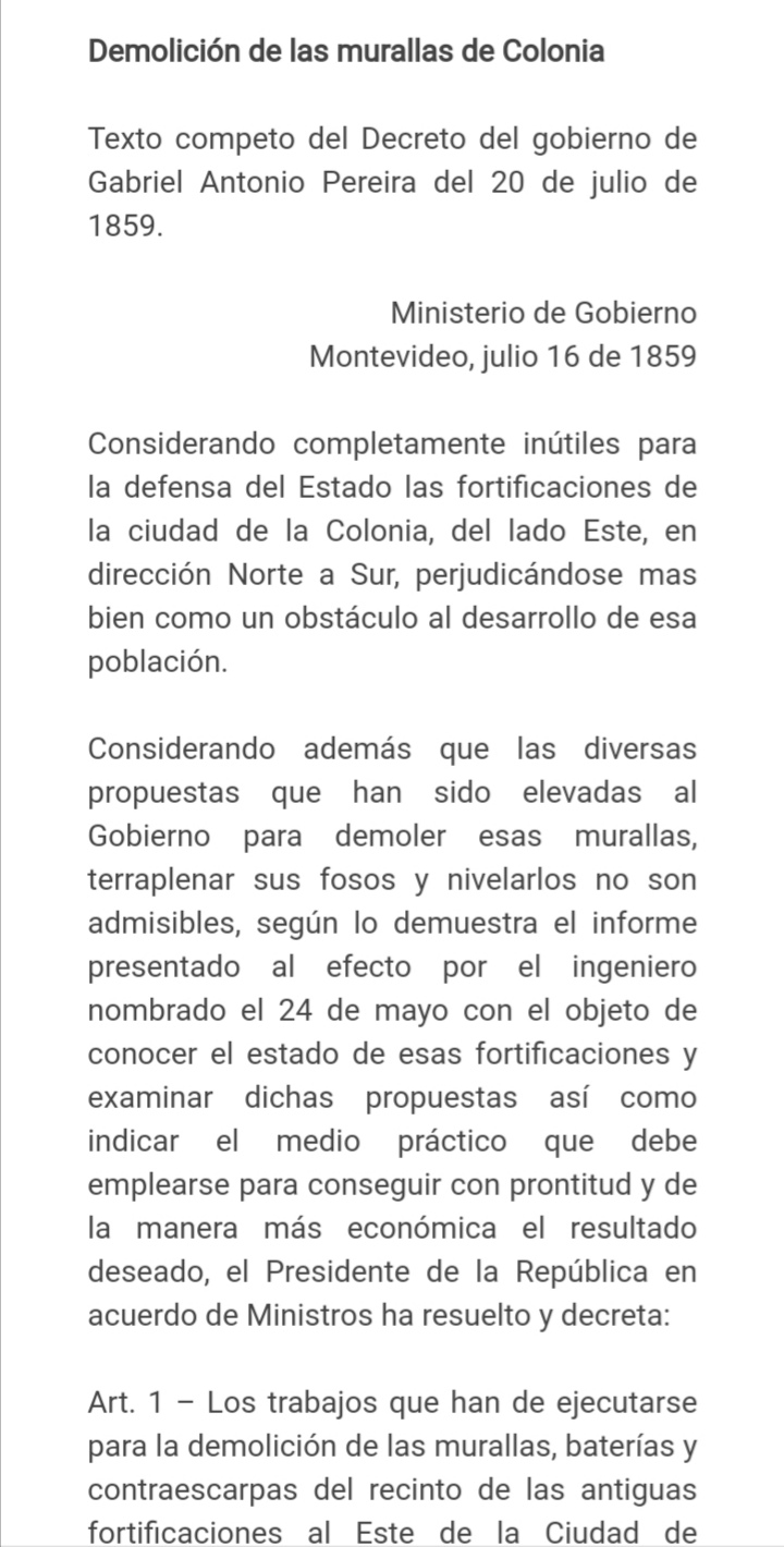 En estas fotos pueden ver la decisión del gobierno de Gabriel Pereira que data de Julio de 1859 y en las cuales se explicita el porqué se llevará a cabo el derrumbamiento de la muralla.