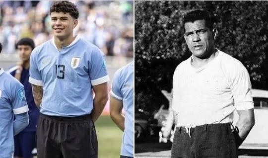 La imagen que compara a Alan Maturro con la gloria uruguaya Obdulio Varela. Apréciese los detalles de la postura, la posición de los brazos y la camiseta dentro del short. Fuente: El Observador.